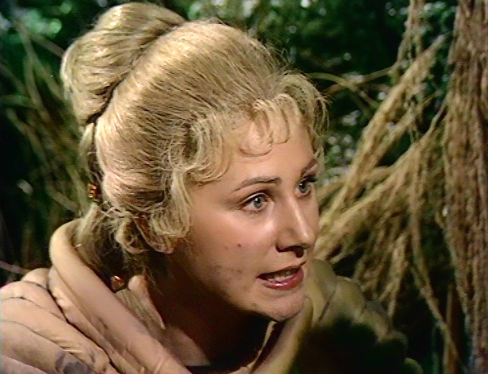 Of course, we know that Jo is alive and well thanks to being rescued from the shuttle by an invisible Spiridon, who cooks up a potion to dribble over her Fungoid-infected arm and cure it. He tells her that he saw a "tall fair-haired man" taken prisoner into the city (aren't all the Thals tall and fair-haired?), as well as a man she recognises as the Doctor. So naturally, that's where she'll want to go next, although again it's a bit silly that she seems surprised to hear there are Daleks on Spiridon. Is she not aware that they were pursuing the Daleks in the TARDIS?